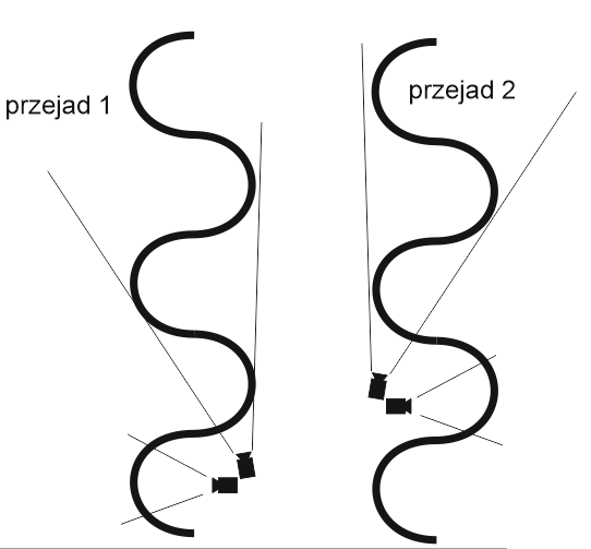 Nagraj dwa flimy na których na każdym dwa skręty są widziane z dołu oraz jeden jest na wysokości kamery, najlepiej na jednym backside, na drugim frontside. Jak na rysinku poniżej